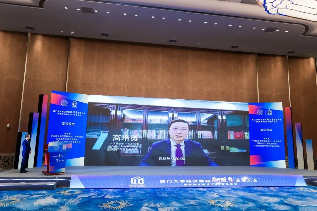 高培勇表示,百年来厦大经济学科在全国经济学领域一直处于领先地位,在国际上颇有影响力,其理论经济学与应用经济学并重、互为依托、互相促进的学科格局,在全国高校中特色明显。厦大经济学科在不同时期为推动中国经济社会发展培育了大量英才,作出巨大贡献。祝福厦门大学经济学科,在经济学院、王亚南经济研究院、邹至庄经济研究院这三驾马车的共同驱动下,取得更为世人瞩目的学术成就,为加快构建中国特色社会主义政治经济学学科体系、学术体系、话语体系作出新的更大的贡献。