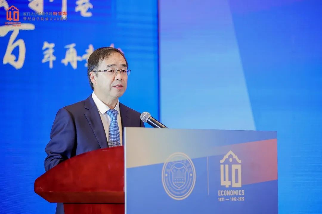 张宗益指出,经济学科百余年底蕴深厚,经济学院建院40年成就辉煌。特别是近年来,经济学科在人才培养、科学研究、社会服务、国际交流合作等方面取得了令人瞩目的成就,为学校和经济社会发展作出了重要贡献。张宗益强调,厦大经济学科要以习近平新时代中国特色社会主义思想为指导,以本次活动为契机,传承百年荣光,矢志世界一流,奋力开创经济学科新的百年辉煌。一是赓续“站在中国人的立场研究经济学”优良传统,将马克思主义政治经济学基本原理同中国现实相结合,同新时代发展的主题任务相结合,为构建中国特色、中国风格、中国气派的中国经济学贡献智慧和力量。二是主动担当作为,聚焦中国式现代化伟大实践,瞄准未来学科发展需求,以国家目标为牵引,组建大团队,承担大项目,产出高水平成果,更好回答我国经济发展的理论和实践问题。三是坚定“中国教育是能够培养出大师来”的自信,全面提高人才自主培养质量,为社会主义现代化强国建设输送拔尖创新人才。四是锚定世界一流目标,打造一流标杆,坚定走高质量内涵式发展道路,促进各方面工作不断提升,为学校“双一流”建设发挥示范和引领作用。