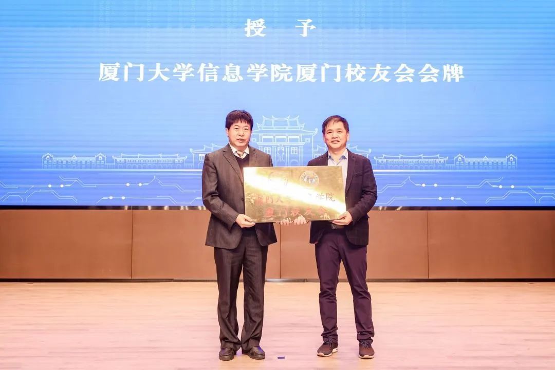 大会审议表决了信息学院厦门校友会、厦门大学校友会信息学院分会章程和相关任职人员建议名单,正式宣布信息学院厦门校友会、厦门大学校友会信息学院分会成立,并举行了授牌、授旗和颁发聘书仪式。
