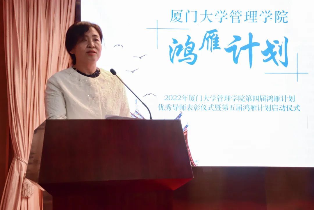 戴蓥简要回顾了之前四届鸿雁计划的历程,代表学院对第四届鸿雁导师们的付出表达了感谢,并对第五届鸿雁计划的前期筹备情况作了介绍。戴蓥表示,希望管理学院第五届鸿雁计划能够取得更多创新成果,“小雁子”们在优秀导师的带领下能够有更快成长、更大收获。