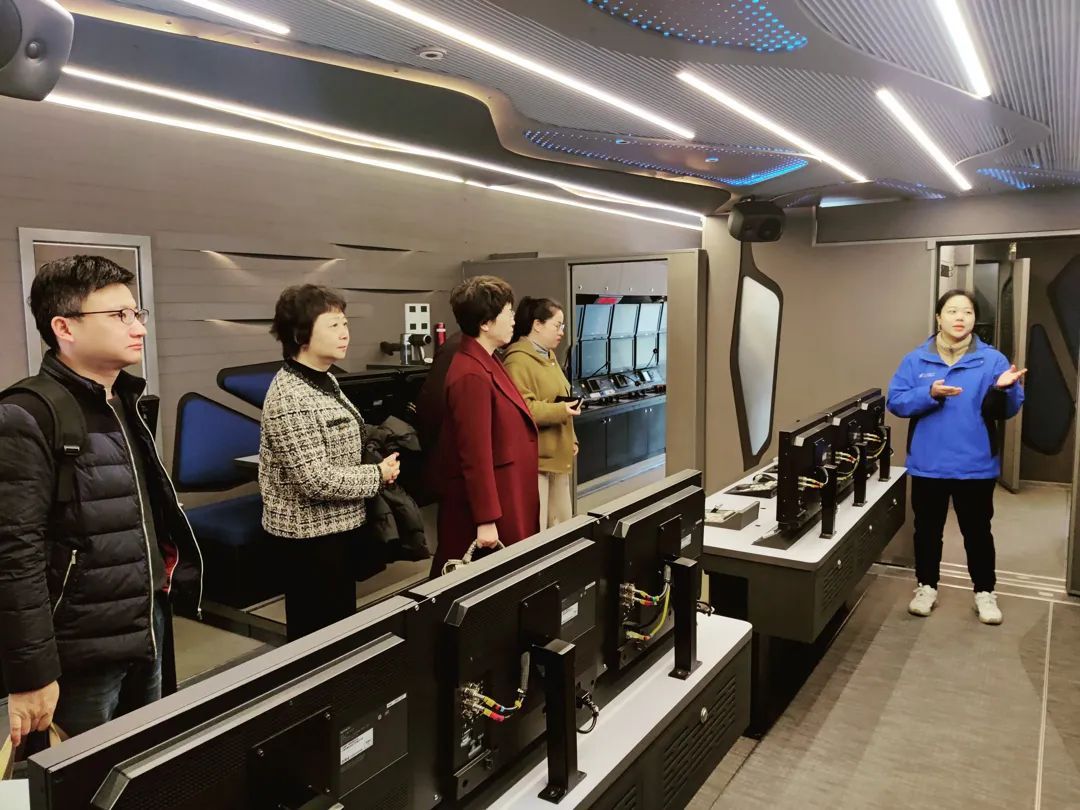 随后,院领导一行在95级院友、省广播影视集团科技文体传媒中心文体频道副总监商建汤陪同下参观了集团旗下的4K超高清转播车、沉浸式超高清视频体验馆、全媒体演播室和融媒体指挥中心等先进设施设备。最后,陈菁与省广播影视集团科技文体传媒中心高原主任代表双方签定战略合作协议,双方围绕福建文旅产业国际传播、国际传播人才培养、福文化海外传播数据分析、外文学科百年庆等方面的合作展开深入交流和讨论。