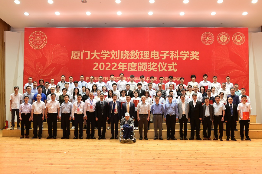 2022年5月8日下午,厦门大学刘晓数理电子科学奖(2022年)颁奖典礼在科艺中心音乐厅隆重举行。厦门大学副校长周大旺,厦门大学原党委副书记、校关工委常务副主任、校友总会副理事长赖虹凯,厦门大学1980级物理系校友、深圳格亮光电有限公司董事长刘晓,瑞典皇家科学院院士、瑞典皇家工程院院士、刘晓校友的导师Lars Samuelson,南方科技大学讲座教授孙小卫,厦门大学实验室与设备管理处处长施芝元,厦门大学教育发展基金会秘书处副秘书长赵晓慧,厦门大学校友总会副秘书长郑辉出席了颁奖典礼。