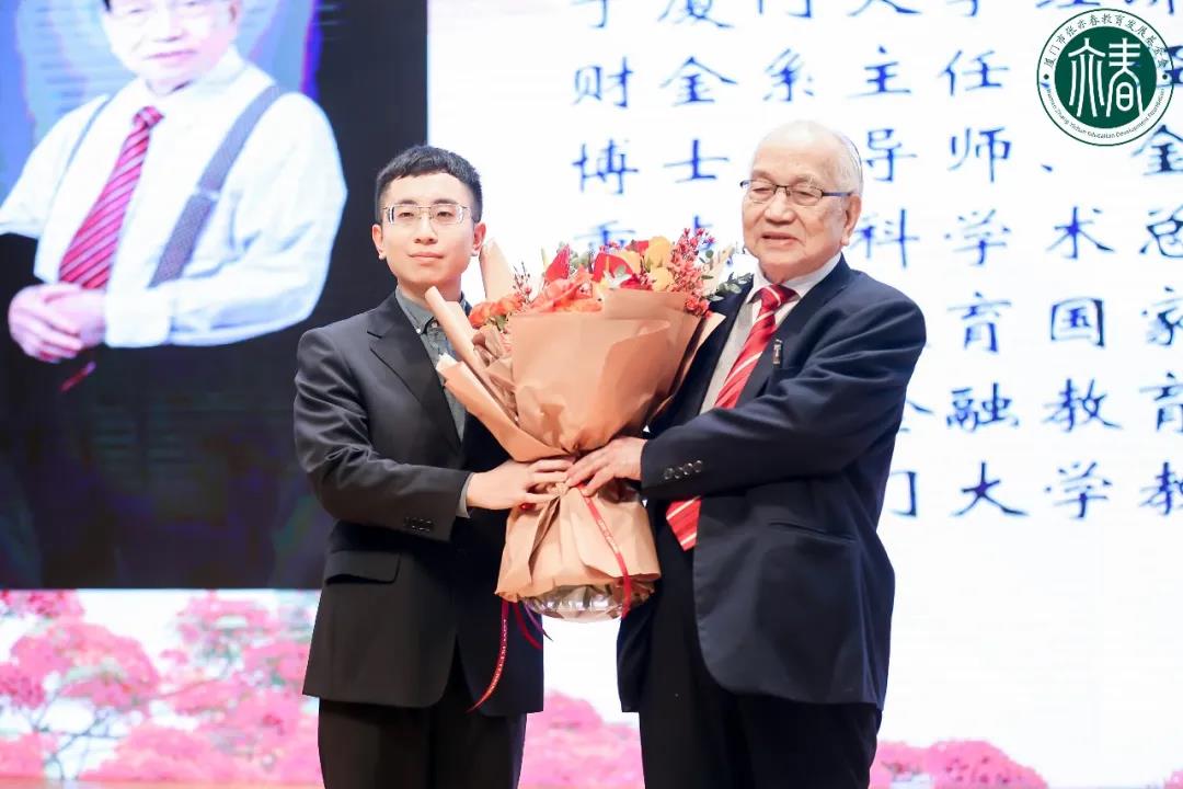 随后,张亦春教授的关门弟子为张老师献花致意。中国金融学科终身成就奖获得者、西南财经大学曾康霖教授,中国金融学科终身成就奖获得者、辽宁大学白钦先教授,中国金融学科终身成就奖获得者、对外经济贸易大学邱兆祥教授,中央财经大学原校长王广谦教授先后致辞。中国银行原行长李礼辉,厦门大学经济学院林宝清教授作为张亦春教授的学生代表先后发言。