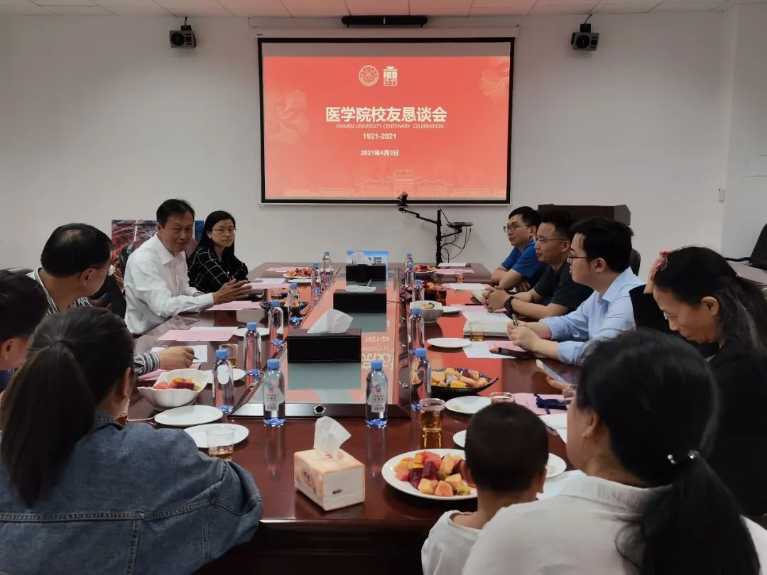 4月3日下午,在医学院爱礼楼103室举行了医学院校友恳谈会,校友代表们向老师们汇报了毕业后的学习工作生活情况,学院分管校友工作的薛茂强副院长向同学们介绍了近年来我院获批临床医学博士学位授权点、通过临床医学专业认证等喜讯。与会的钱林超副院长、叶本兰教授欢迎校友们回校参加百年校庆活动。