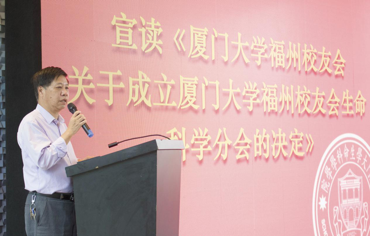厦门大学福州校友会原会长、厦门大学百年校庆行动大使叶文振教授在激情洋溢的致辞中,为福州校友会生命科学分会的成立大力点赞。福州校友会连续三年获得了厦门大学优秀校友会的称号,叶文振教授希望生命科学分会能够再续福州与厦门大学的校地情缘,充分发挥生命科学的学科优势,做好科学普及、产业对接及社会服务等工作,走开放式办会模式,积极对外交流合作,为厦门大学百年校庆、生命科学学院百年学科庆典再添助力。