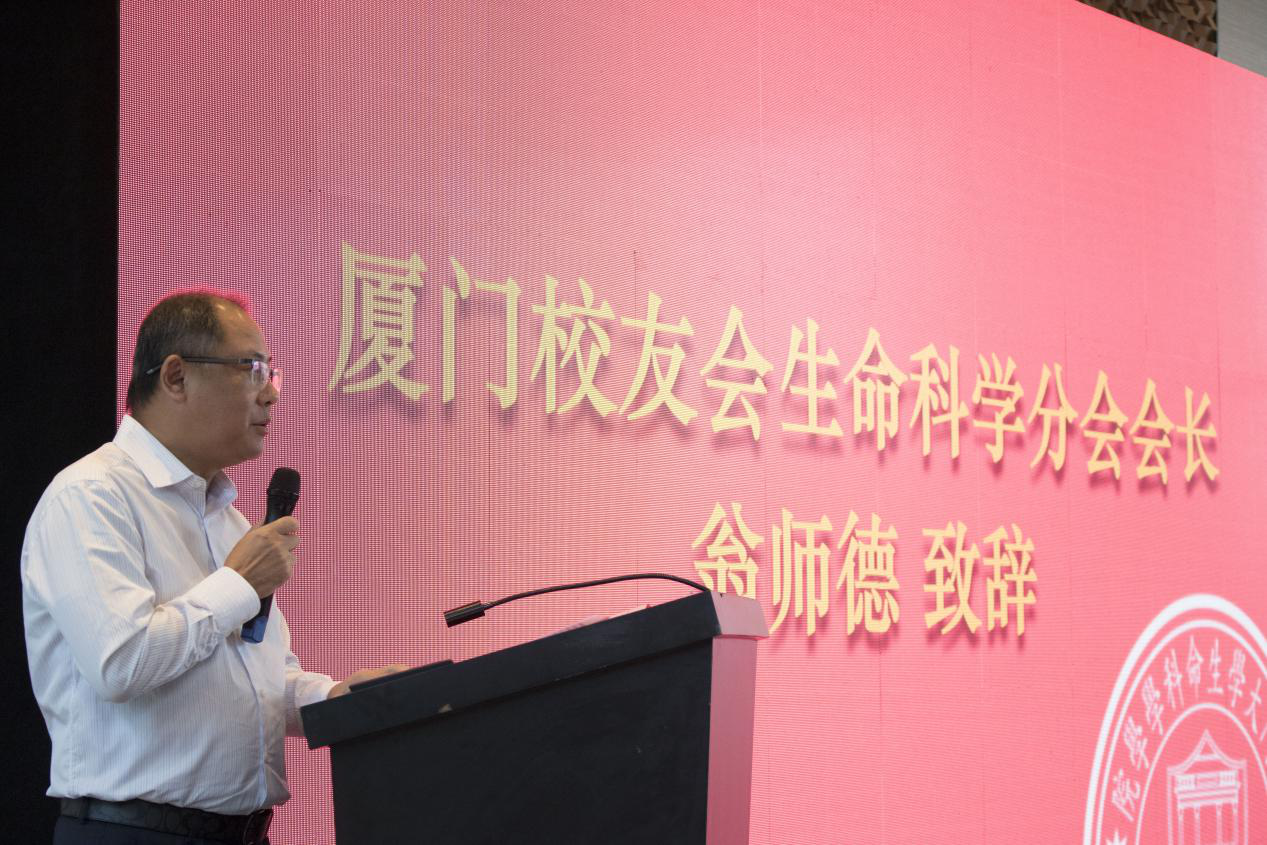 厦门大学厦门校友会生命科学分会会长,1983级植物学专业翁师德校友代表厦门校友会生命科学分会表示祝贺,并表示厦门校友会生科分会一定会与福州生科分会多多沟通联系,加强联动,为学校学院的发展提供资源和平台,共同促进两会校友工作更上一个新台阶。