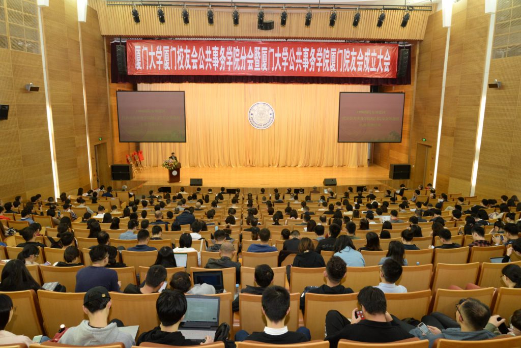 11月30日上午,厦门大学厦门校友会公共事务学院分会暨公共事务学院厦门院友会(以下简称“院友会”)成立大会在思明校区科学艺术中心成功召开。厦门大学校友总会理事长朱崇实,公共事务学院党委书记黄新华、院长朱仁显等学院领导,曾在政治学系与公共事务学院工作和任教的领导、老师代表,厦门大学校友总会、厦门校友会和兄弟分会代表,来自闽西南(厦门、漳州、泉州、三明、龙岩)五市、从1984至2016级公共事务学院校友代表,以及在校师生代表约300人齐聚一堂,共襄盛举。