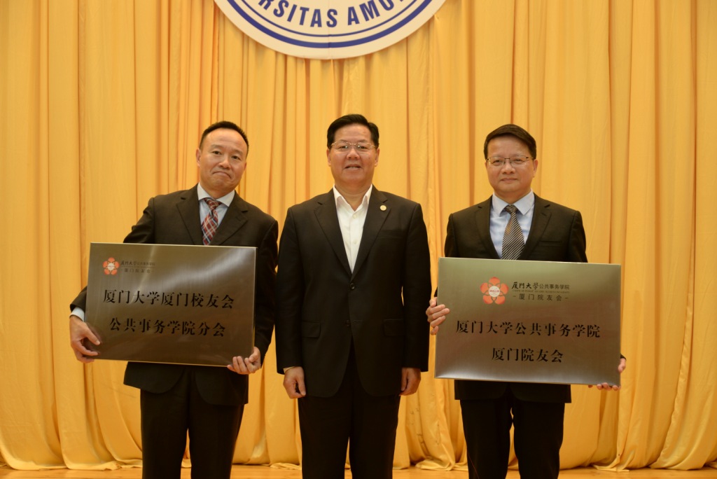 会议举行了院友会、“院友之家”授牌和授旗仪式。朱崇实向陈万胜、陈志铭授厦门大学厦门校友会公共事务学院分会会牌,厦门校友会监事长许培新向陈志铭授旗,黄新华与陈志铭共同为“院友之家”揭牌,与会嘉宾和学院领导还向名誉会长、会长、常务副会长、副会长、秘书长授牌。