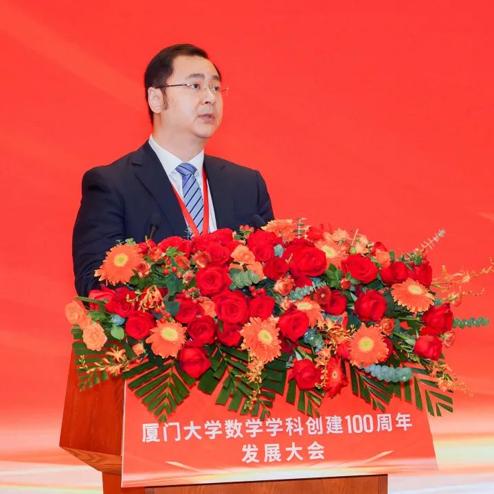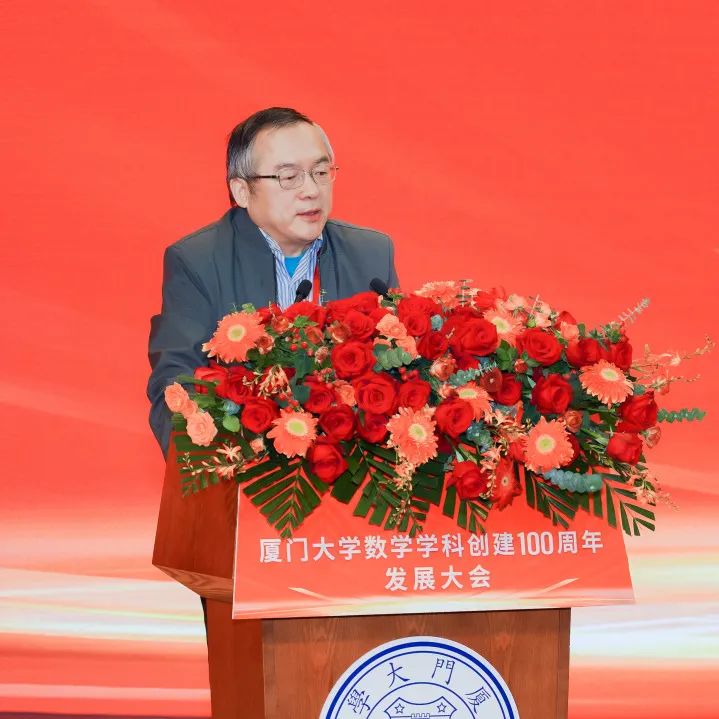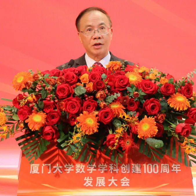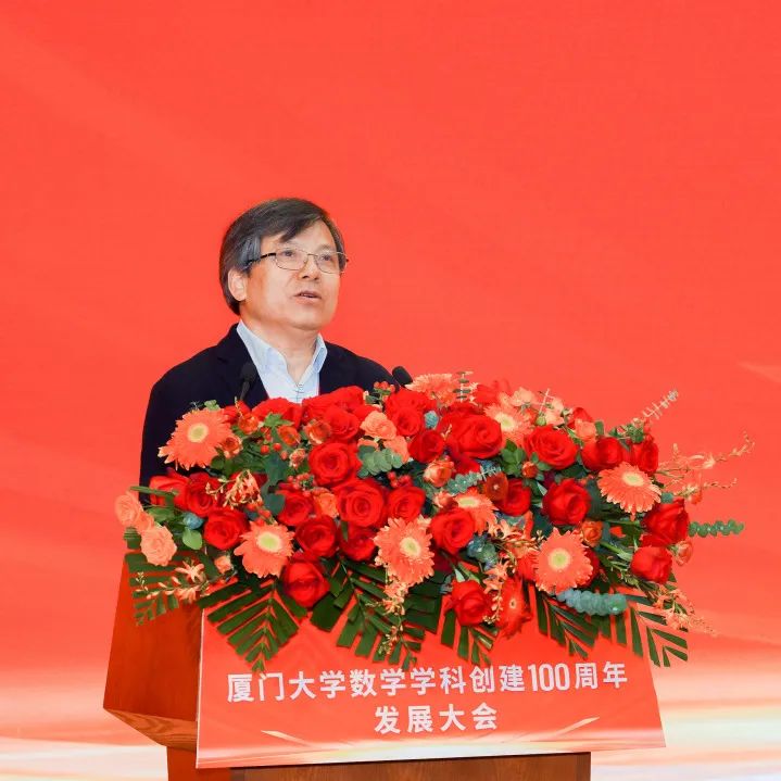 他指出数学等基础学科是厦门大学的立校之基和办学特色。1923年学校创建算学系,招收第一位本科生,100年来,数学学科秉持“自强不息,止于至善”的校训精神,与时代同呼吸、与民族共命运,吸引了姜立夫、杨武之、江泽涵、张希陆、方德植、李文清、张鸣镛等大师大家来校执教兴学,培养了以柯召院士、陈景润院士、林群院士、陈纯院士等为代表的一批杰出校友,为推动国家科技进步和区域经济社会发展贡献了重要力量。