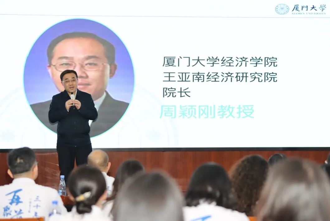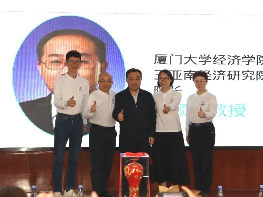 经济学院、王亚南经济研究院院长周颖刚教授用振奋人心的演讲表达了母校对各位校友的热烈欢迎并对未能到场的校友们表达思念之情,并介绍了统计系多年来的发展历程,以及现如今在学界取得的瞩目成就。随后,学生代表向厦门大学经济学科赠送龙凤呈祥漆线雕礼物,祝愿学院越办越好。