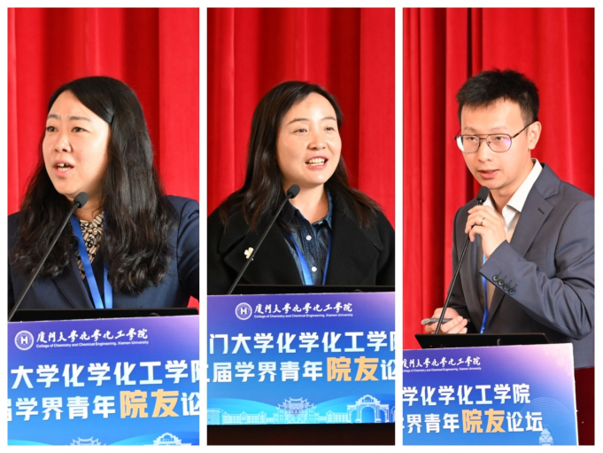 化学化工学院2012级博士校友、昆明理工大学研究生院副院长、冶金与能源工程学院教授李雪,2010级博士校友、深圳大学医学部生物医学工程学院教授杨华艳,2016级博士校友、西湖大学工学院青年研究员向宇轩分别以《地方院校的青椒之旅》《来了深圳就是“深圳人”》《化院人在新型高等院校工作是怎样一种体验?》为题,分享了各自的成长轨迹以及工作至今的心得体会。与会校友结合各自工作实际,就如何更好地申报项目、培养学生、推进科研成果产业化等问题,与三位报告嘉宾展开了讨论。