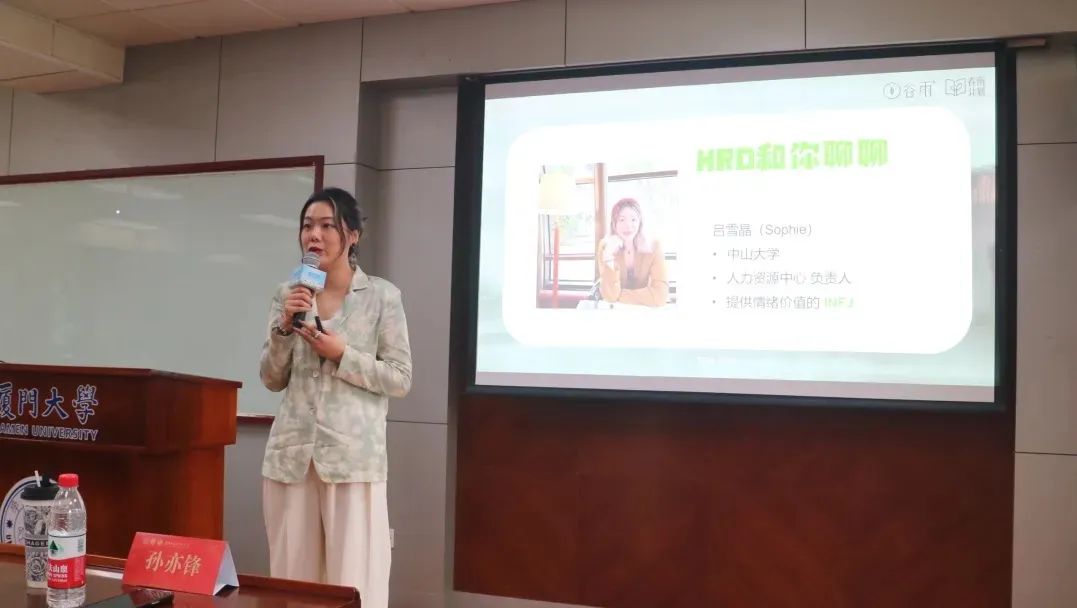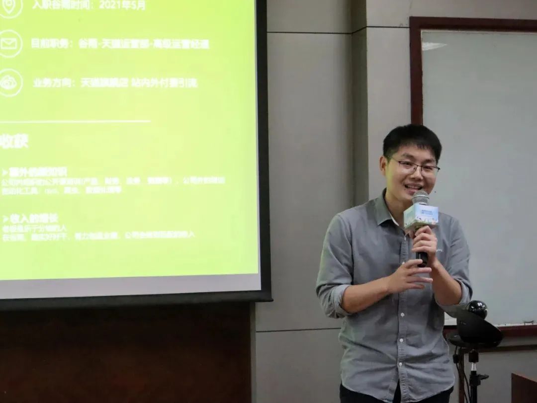随后谷雨人力负责人吕雪晶介绍如何利用“三环定位法”做好自身的职业生涯规划。2006级海洋生物专业校友陈兴勇和2018级广告学专业校友朱嘉伟也分享了他们在谷雨的成长经验和个人经历。