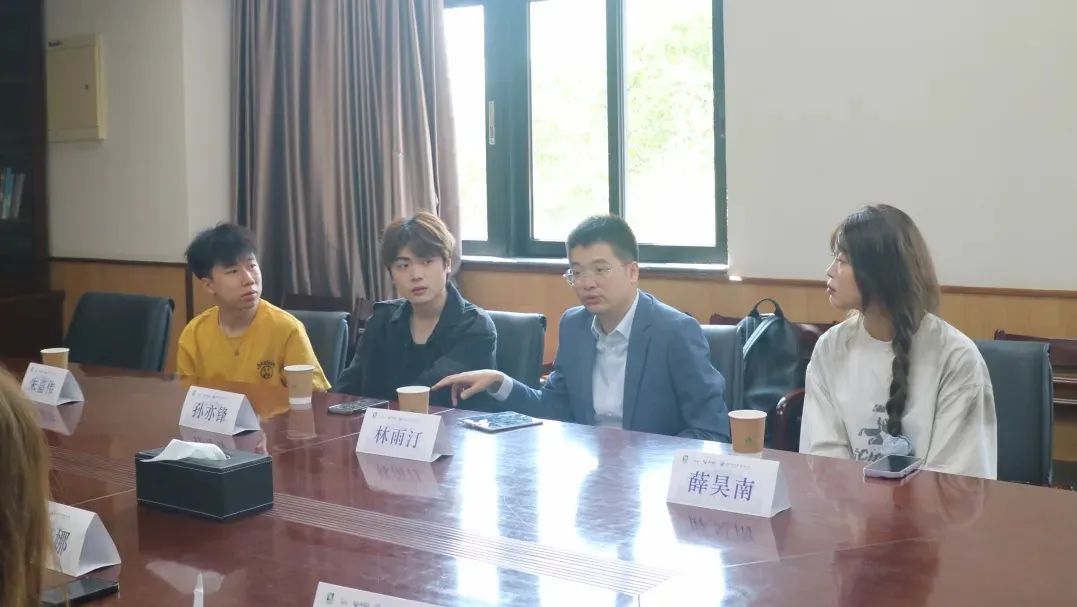 林雨汀从核心技术、生产研发和产品理念等方面介绍了品牌发展情况;来自谷雨市场部的三位厦大校友朱嘉伟、孙亦锋和薛昊南分别介绍了产品在新媒体各渠道的布局和运营情况。袁喜娜和谷雨团队就相关内容进行了充分的探讨和交流,双方都希望后续在课题项目和人才培养等方面有更深入的合作。