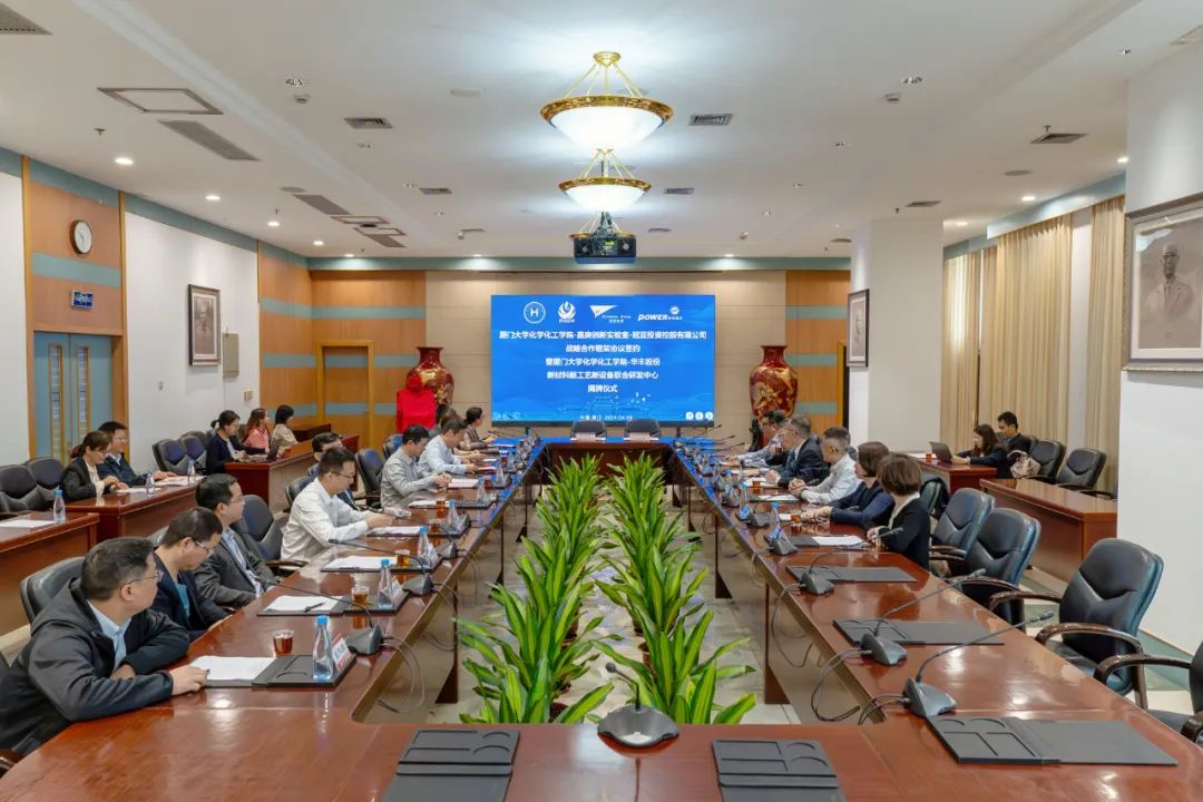 4月9日,厦门大学化学化工学院、嘉庚创新实验室与冠亚投资控股有限公司战略合作框架协议签约暨厦门大学化学化工学院-华丰股份新材料新工艺新设备联合研发中心揭牌仪式在颂恩楼215会议室举行。