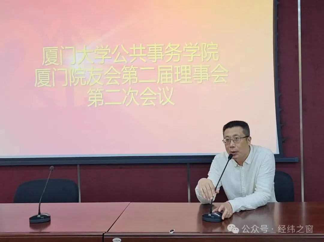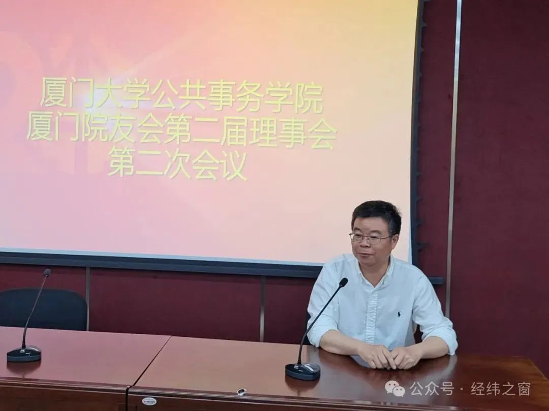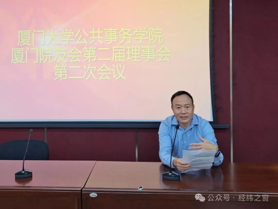 4月13日,厦门大学公共事务学院厦门校友会召开第二届理事会第二次会议。学院党委书记刘艳杰、副院长罗思东以及校友会顾问朱仁显出席,名誉会长陈万胜、会长陈志铭及会长办公会成员、理事、学院各年级校友代表参加会议。会议由秘书长刘建河主持。