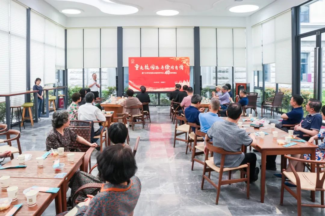 在思明校区,走过上弦场,漫步生物馆,回到曾经的114教室开一场主题班会,仿佛昨日重现,那些珍贵的回忆如同陈酿,历久弥香。尽管时光荏苒,距离遥远,但这份同窗之情却犹如纽带,将大家紧紧相连。马进龙代表学院向1980级返校校友们表示热烈欢迎,并对校友们给予学院、学校的关心和支持表示感谢,期待校友们常返校园,为学院、学校发展建言献策。返校活动不仅是一次情感的回顾,更是对未来的一种期许与鞭策,它激励着每一位1980级校友持续前行,以更加饱满的热情和坚定的决心,去创造新的辉煌,开启人生的新篇章。