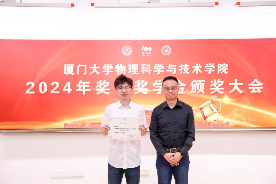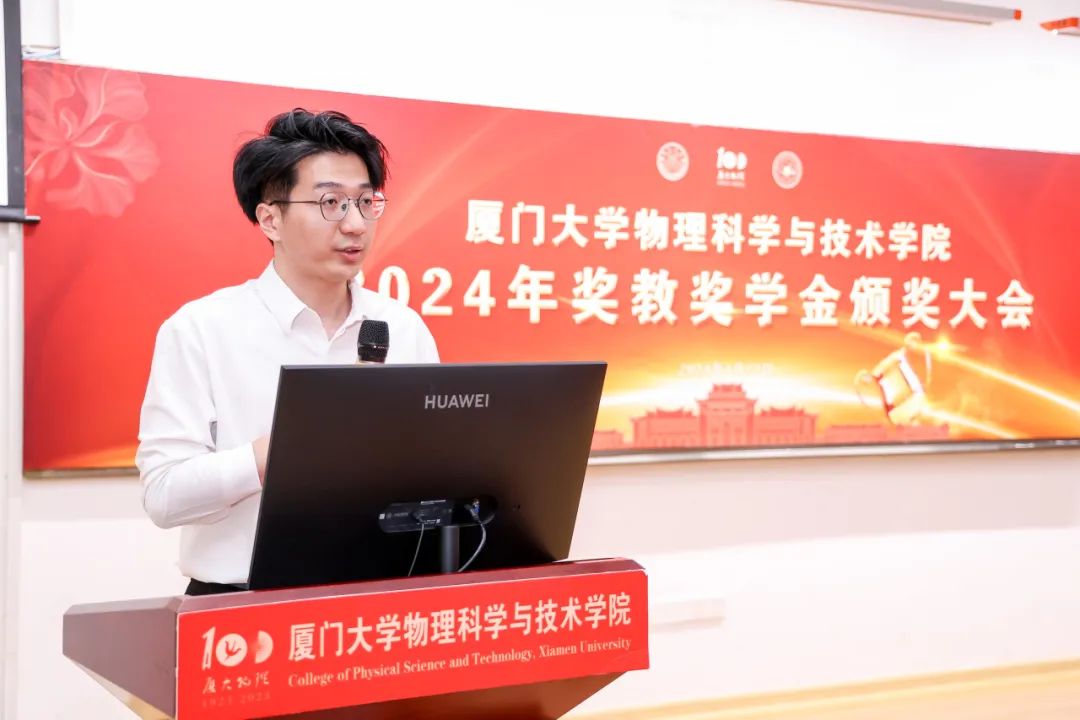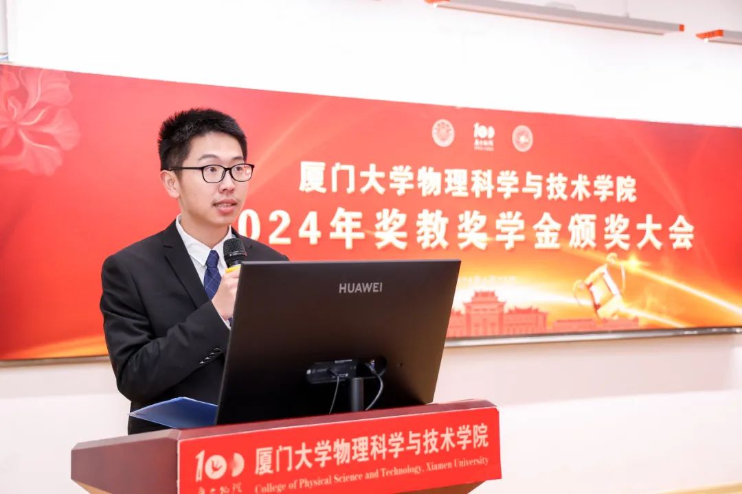 获奖研究生代表、2021级硕士研究生陈柏逸谈到,在读研的过程中,他真切地感受到身边的同学们都在各自的领域中发光发彩,正是这一代代厦大物理人不忘初心、赓续前进,才能够在国家发展与民族复兴的伟大事业中留下厦大物理的足迹。