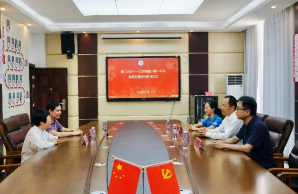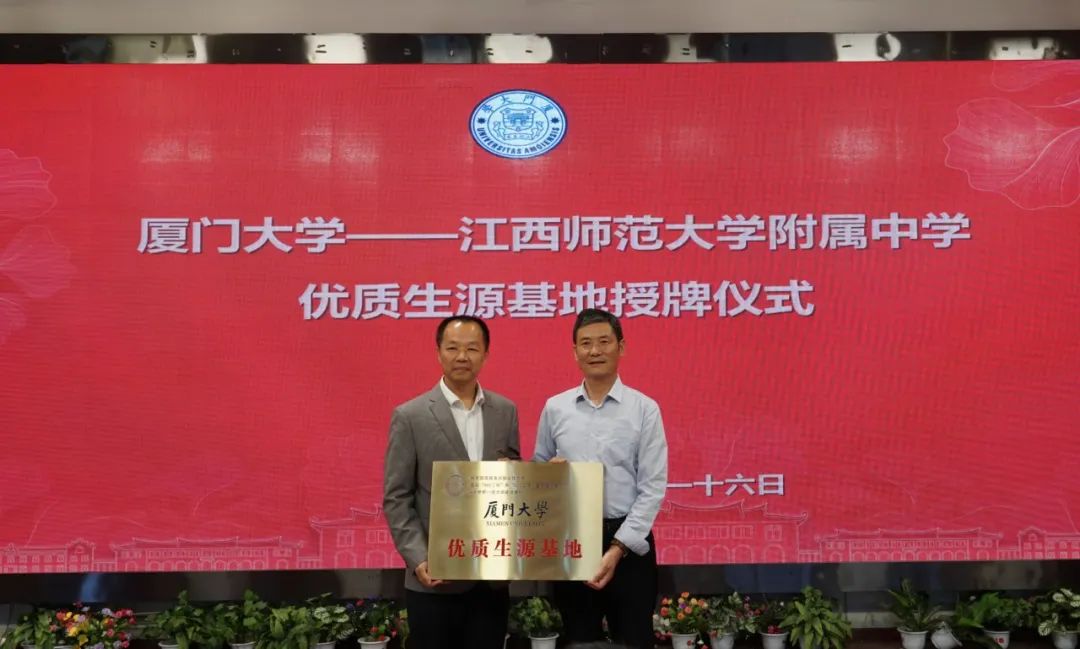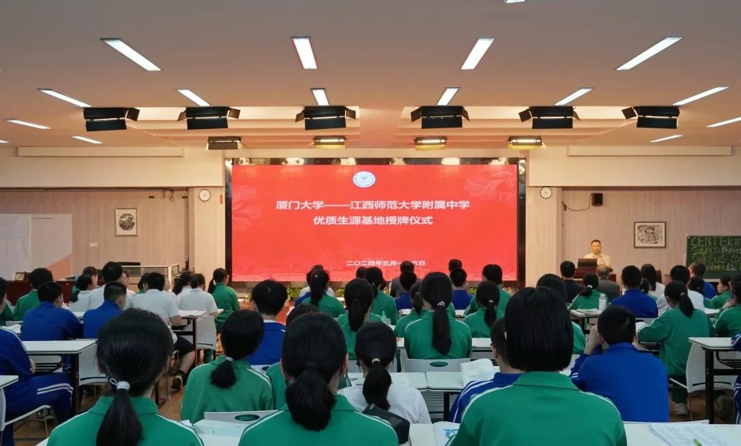 5月16日下午,江西招生宣传组来到江西师范大学附属中学开展厦门大学优质生源基地授牌、招生宣讲和科普讲座等系列活动。江西师范大学附属中学是江西省第一批授予“全省重点中学”和第一批授予“全省优秀重点中学”的全国名校,教育、教学、科研质量始终保持在全省的前列,被誉为江西中学第一名校。在授牌仪式上,江西师范大学附属中学附中滨江校区校长梁贵生郑重表示,此次江西师范大学附属中学被授予厦门大学优质生源基地的称号,不仅是对本校教育成果的肯定,更是推动两校之间深入交流与合作的重要契机。