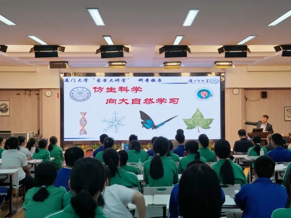 接下来由侯旭教授为大家带来了一场主题为“仿生科学,向大自然学习”的精彩讲座。侯旭教授以日常自然界和生活中的常见现象为例,深入浅出地展示了交叉学科的相关知识和科研工作的开放性思维,生动形象的讲座引发了在场高中生们的浓厚兴趣。讲座现场氛围热烈,欢声笑语不断,不仅激发了学生们对科学研究的兴趣,更加强了他们对大学学习模式的理解与认识。