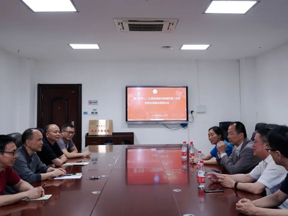 5月16日上午,宣传组一行前往南昌市新建区第二中学开展优质生源基地授牌和座谈交流活动。新建二中作为江西省知名的重点中学,有着雄厚的师资力量和卓越的教育质量。副校长黄春花、教务主任邱国平、教务处副主任刘平华等参加了座谈会,在座谈会上,林升栋院长对新建二中在办学质量以及人才培养方面所取得的显著成就给予了高度评价与肯定。新建二中黄春华副校长亦对厦门大学表达了高度的认可,他强调厦门大学不仅拥有雄厚的硬实力,同时在文化、科研等软实力方面也表现卓越,是一所综合性强、特色鲜明的大学。双方就进一步加强两校间的合作交流,共同推动人才培养工作达成了共识。