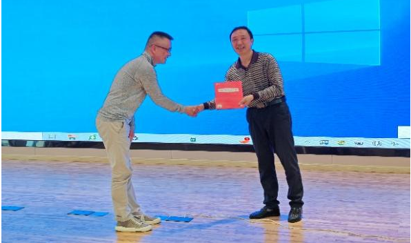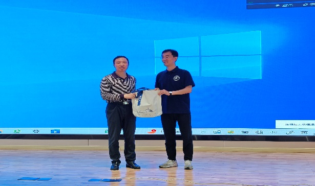 为感谢何剑锋为各位校友提供本次学习参观机会,校友代表为何剑锋学长送上学校寄来的文化衫、纪念品以及校友捐赠的书籍,并祝福学长工作顺利、身体健康。