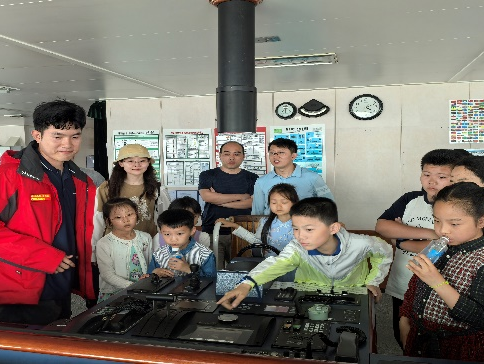 讲座结束后,校友和小朋友们在何剑锋学长和极地中心同事的带领下登上“雪龙”号极地科考破冰船,先后参观了“雪龙”号的驾驶台、科考队员住舱、健身房、直升机甲板和陈列室等区域。“雪龙”号讲解老师耐心为大家介绍“雪龙”号各区域的功能及操作要领,分享了我国极地科考历史和极地地理环境知识,最后通过观看短片近距离感受极地考察破冰船的震撼气势。