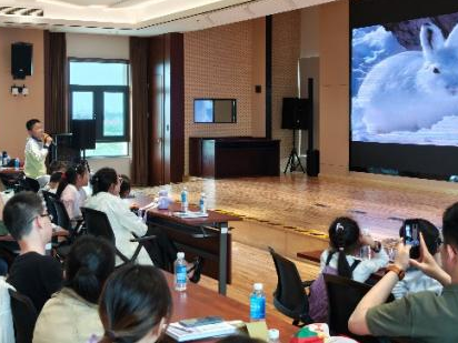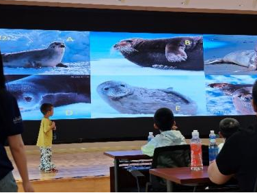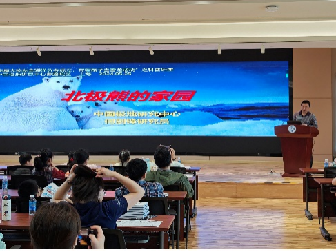 活动开始,厦门大学1986级海洋生物系校友、中国极地研究中心研究员何剑锋首先为大家带来题为《北极熊的家园》的科普讲座。讲座内容由浅及深,层层递进,从“北极熊的家是怎样的?”“北极熊为什么能在冰天雪地生存?”“气候变化对他们有什么影响?”“我们去北极考察做什么?”等问题切入,以提问的方式让小朋友深度参与了解北极熊和它们的家园正在发生的变化,引导小朋友们从自身日常点滴做起,为保护海洋、保护北极熊家园做出贡献。讲座寓教于乐、绘声绘色,使得专业的内容变得生动有趣,在场的大小朋友都收获满满。