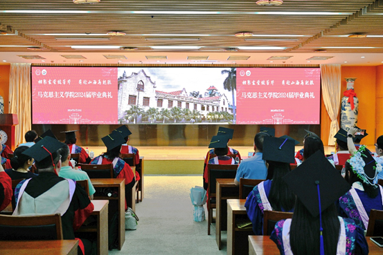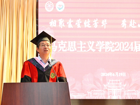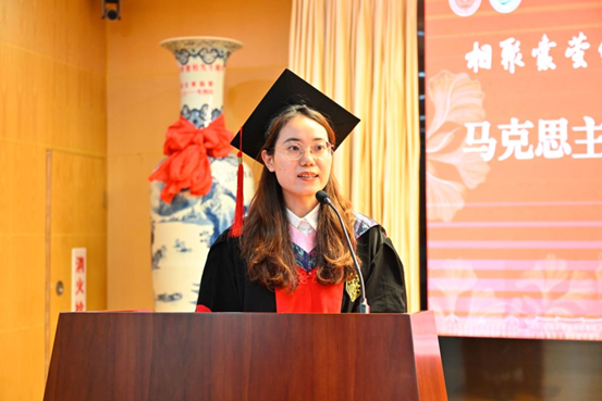 依依不舍,缺不了坦露心迹。2024届博士毕业生代表杨丽京、2024届硕士毕业生代表罗仁杰,依次上台分享自己的毕业感言。他们深情回忆了在厦大马院的求学时光,感谢师长的倾囊相授、无私支持和关怀照顾,并为自己能亲历学院的跨越式发展而感到自豪。他们呼吁全体毕业生将马克思主义理论学以致用、学深悟透,用行动诠释真理、用实践不负所学,共同肩负起时代的重任,传播信仰的种子,用实践书写中华民族伟大复兴的新篇章。