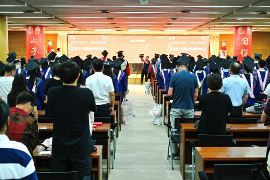 六月蝉鸣,凤凰花开,又是一年骊歌起。6月19日下午,厦门大学马克思主义学院2024届研究生毕业典礼在科艺中心一楼多功能厅隆重举行。厦门大学党委原副书记、马克思主义学院院长徐进功,厦门大学党委原常委、马克思主义学院原院长白锡能,学院党委书记石红梅,常务副院长张有奎,厦门大学党委教师工作部副部长杨建中,副院长原宗丽、林密,学院党委委员苗瑞丹、蒋昭阳、佳宏伟,各教研部负责人、2024届毕业生班主任、师生代表和亲友代表参与了本次典礼。典礼由学院党委副书记刘晓峰主持。