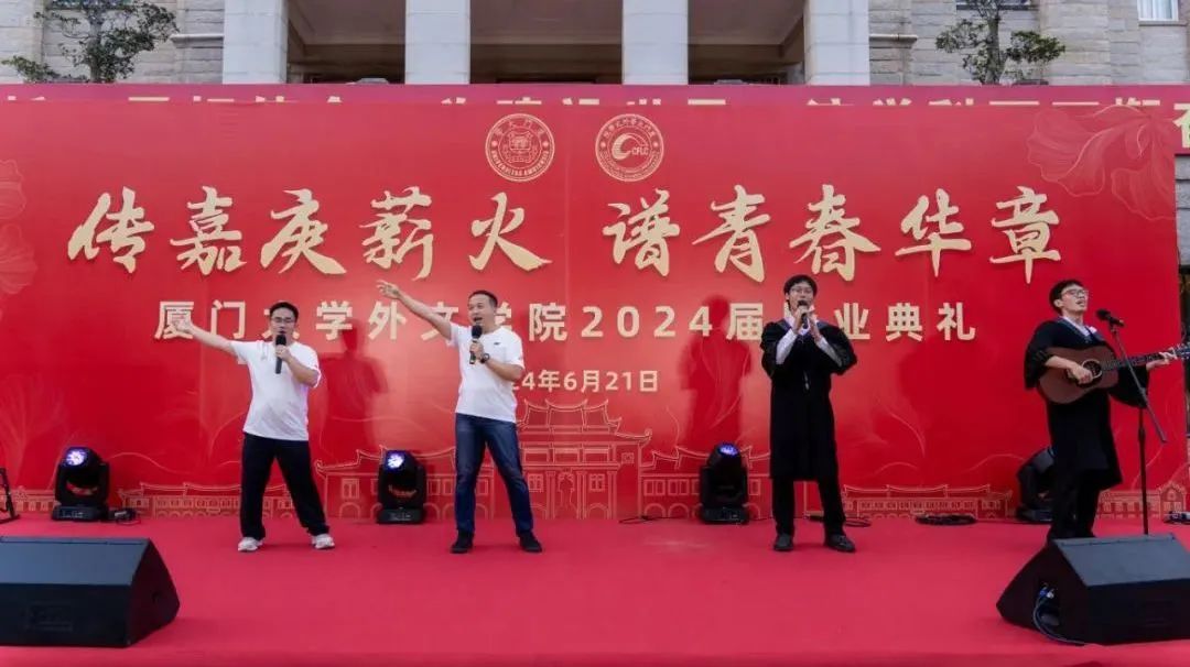 愿祝君如此山水,滔滔岌岌风云起。祝愿外文学院2024届莘莘学子能以“自强不息,止于至善”的姿态屹立于时代的洪流中,以厦大外文百年的荣光为动力,砥砺前行,绽放青春光彩。此去山高路远,我们不说再见!