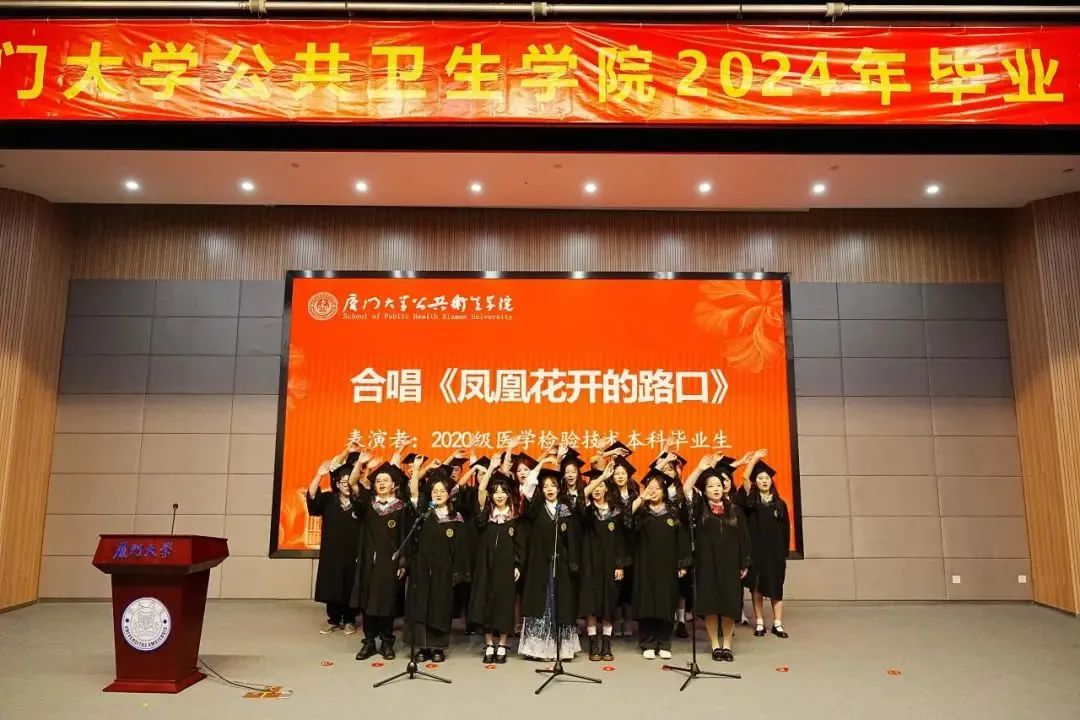 期间,毕业生们也准备了精彩的节目。其中2019级预防医学本科毕业生准备了配音《声聚未来》;2020级医学检验技术本科毕业生带来了合唱《凤凰花开的路口》;研究生优秀毕业生共同带来了诗朗诵《站在年轻的路口》。他们用节目表达内心的憧憬与不舍。