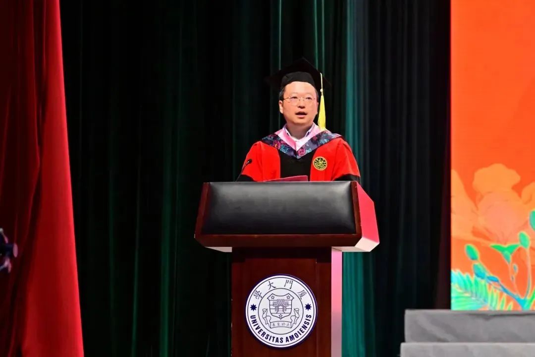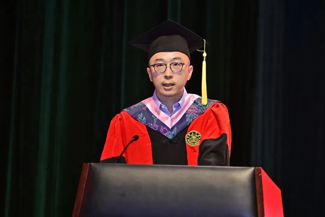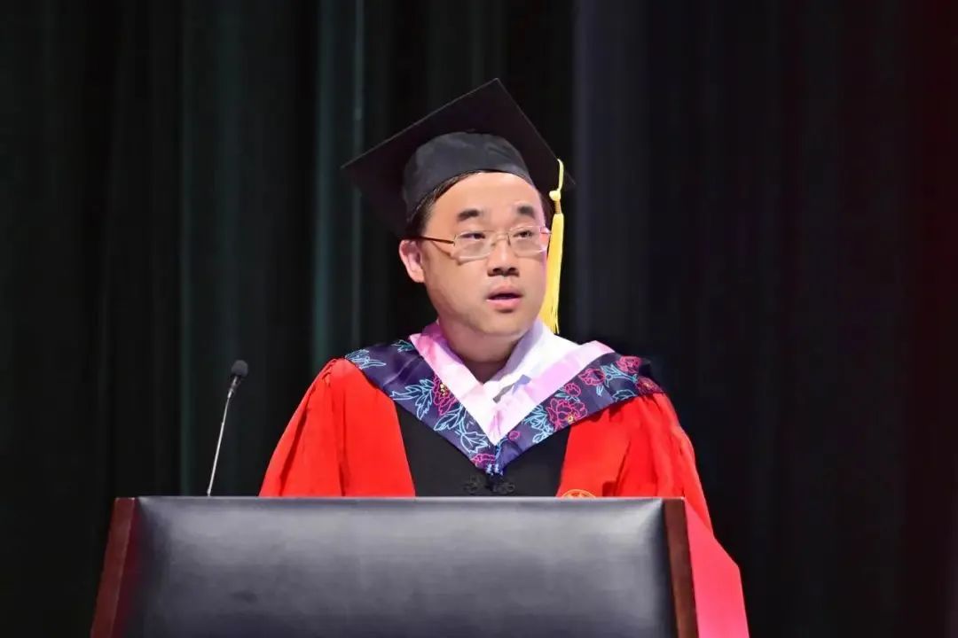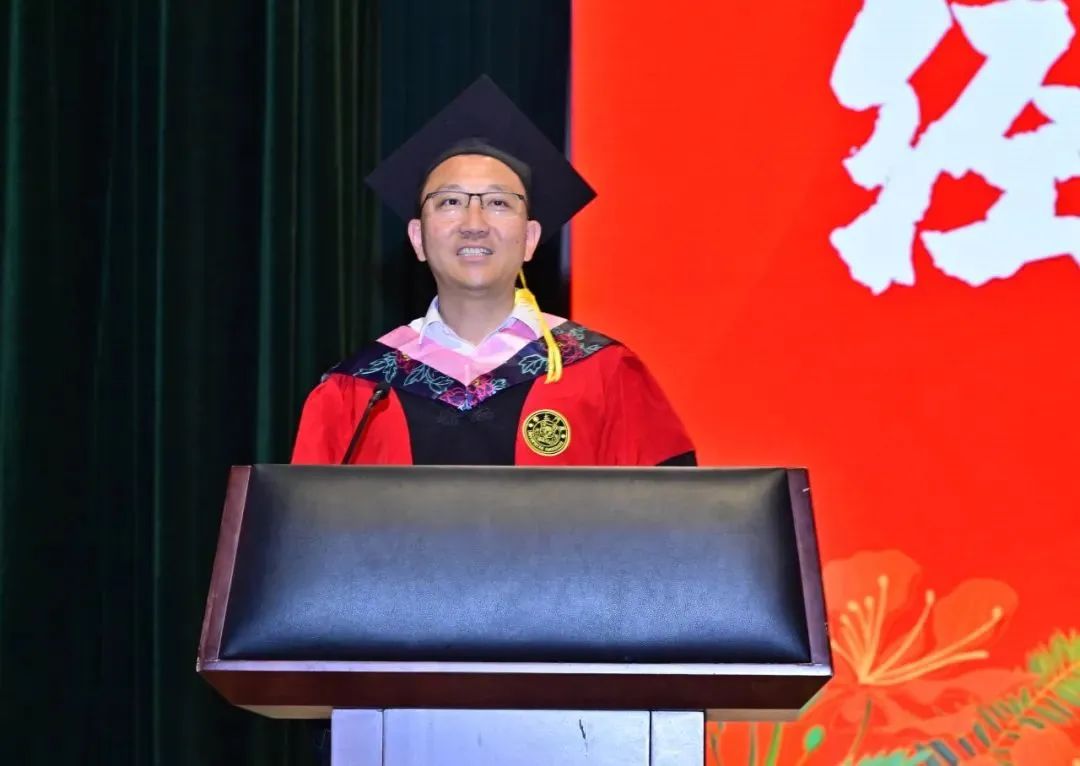 经济学院教授蔡熙乾作为教师代表发言。他向同学们分享了三个关键词:一是充满激情。只有满怀激情,保持好奇心,敢于走出舒适区,做终身的学习者,才能不断突破自我、不断成长;二是打开格局。要把小我融入到祖国和人民的大我之中,在国家发展中实现个人价值;三是保持快乐。保持乐观的心态,始终保持对生活最大的热爱。