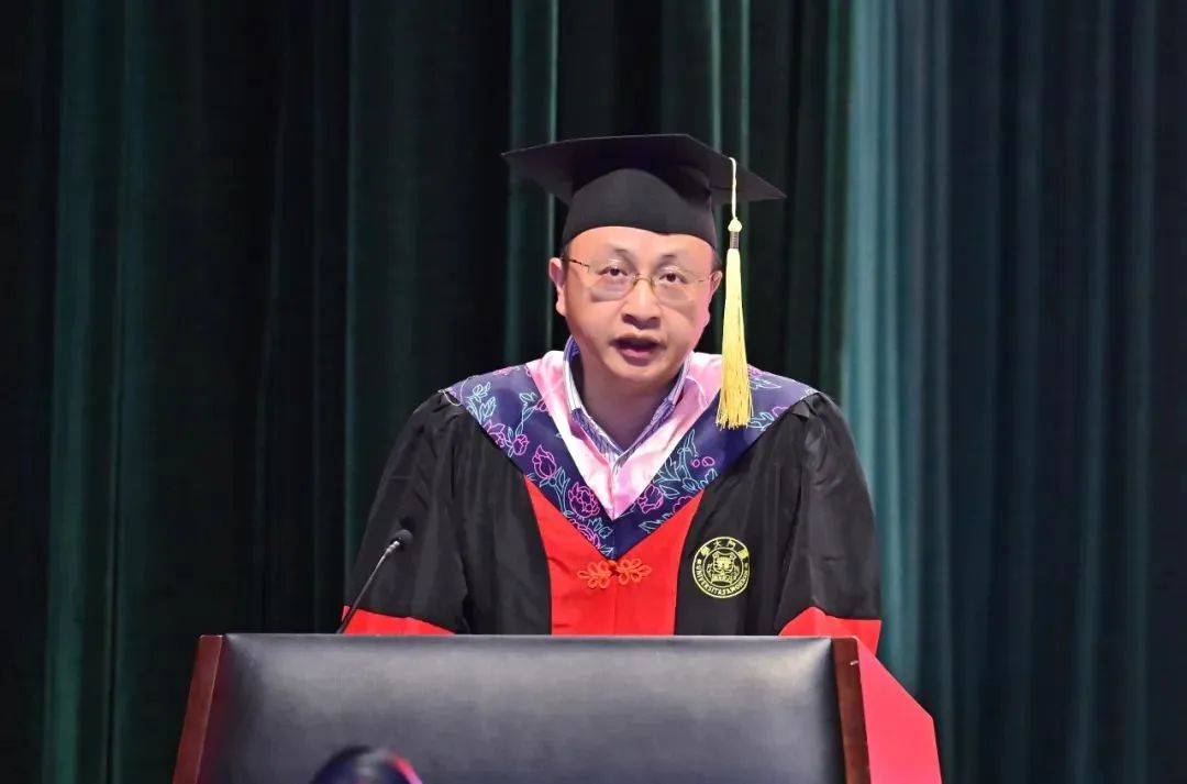 经济学院、王亚南经济研究院院长周颖刚首先致辞。他代表三院向2024届1285名毕业生致以最诚挚的祝贺。