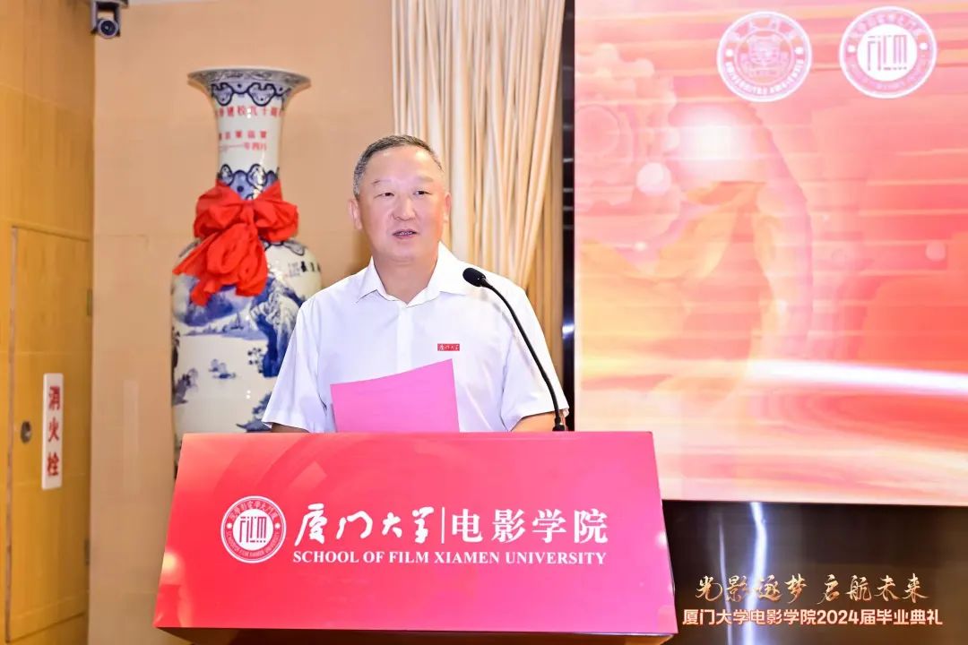 他结合自身从影经历,给即将离开校园的同学们提出了五点建议,要坚持学习、勇于创新、心怀社会、注重协同和坚守初心,叮嘱同学们牢记“自强不息,止于至善”的厦大校训,在今后的人生道路上,继续保持对电影事业的热爱与执着,勇敢追求自己的梦想,为中国电影事业的发展贡献力量。