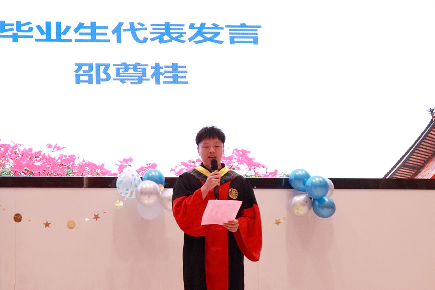 21级博士邵尊桂作为毕业生代表在典礼上发表感言。