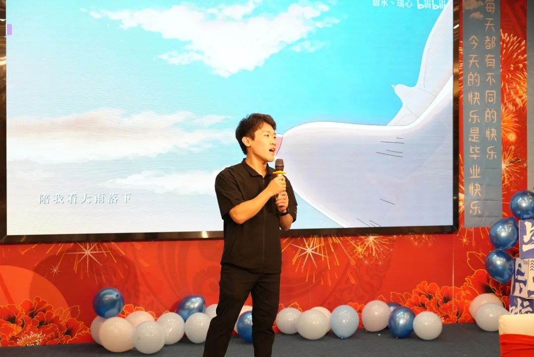 欢送会以《去明天》毕业生视频为开端,视频中回首毕业生们大学生活的点滴,串联起美好、难忘的校园记忆。2020级本科生代表余星城、2021级硕士生代表王丹先后上台发言,他们用真挚的话语表达了对学院老师们精心栽培的衷心感谢,对四年同窗们的诚挚谢意,并将最美好的祝福送给学院全体2024届毕业们。