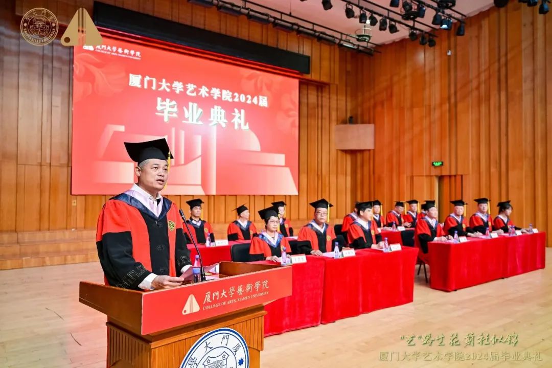 6月26日下午,厦门大学艺术学院2024届毕业典礼在李成义·张治华音乐厅举行,院党委书记张必华,院长刘赦等院领导,院关工委副主任刘以光,教师代表,家长代表以及2024届全体毕业生等参加典礼。院党委副书记黄俊清主持典礼。