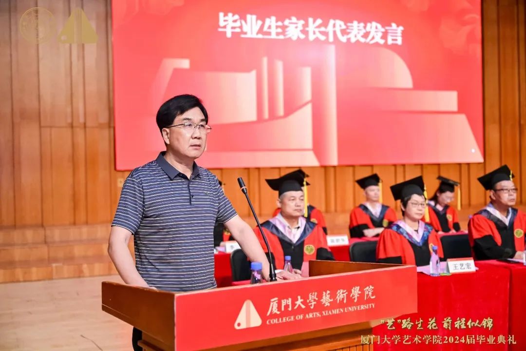 毕业生家长代表林民雄表达了对孩子们成长的骄傲和欣慰,以及对学院的感激之情,同时期待孩子们能够在未来的道路上取得更大的成就。