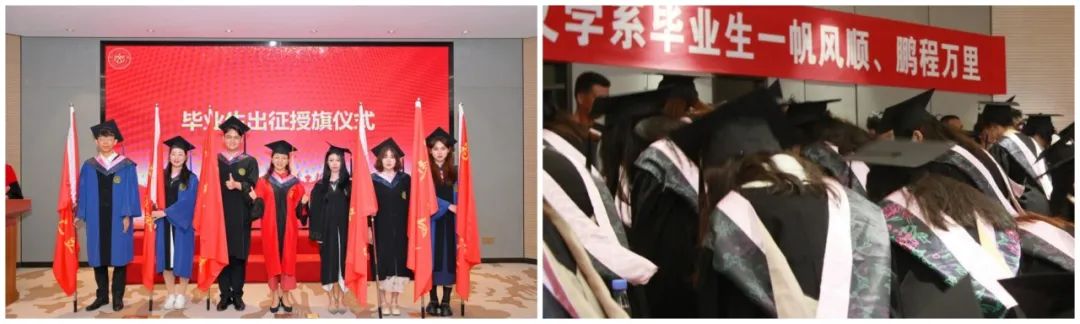 在庄严的乐声中,系党委书记黄宇霞为毕业生代表授旗出征,希望2024届全体毕业生铭记母校深情厚谊,积极投身于祖国的伟大事业中,在各自的工作岗位上真实于自我,无愧于社会,为实现中华民族伟大复兴的中国梦贡献青春力量。