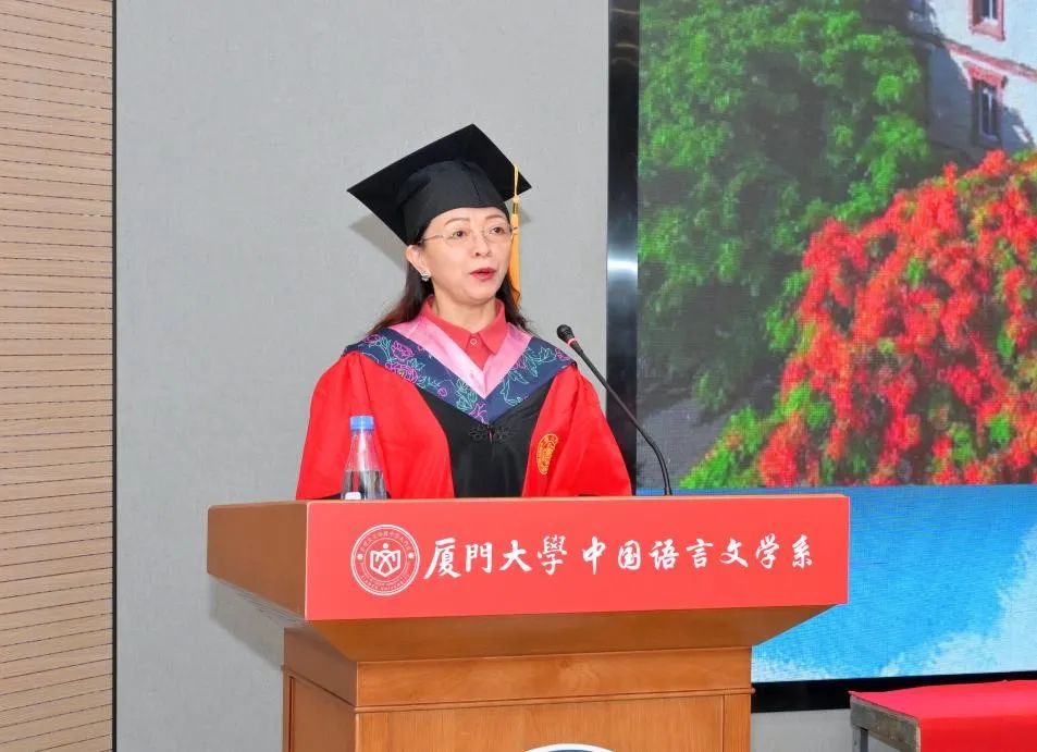 中国语言文学系党委书记黄宇霞在致辞中将厦大中文承载的百年历史与刻印在同学们求学生涯中的中文气质娓娓道来,并用四句诗词表达了对2024届毕业生的肯定与期许。“春风有信声声好,学海无涯步步深”,回首过去几年,中文学子在厦园文化沃土中日复一日地自我耕耘,涵养腹有诗书的中文气质;“曾是昔年辛苦地,不将今日负初心”,中文学子不论身在校园还是步入社会,都将不忘践行中文人的责任担当,厚植嘉庚精神,赓续中华文脉;“追风赶月莫停留,平芜尽处是春山”,希望同学们勇敢走出象牙塔,未来的人生途中始终有中文品质的陪伴,踔厉奋发,笃行不辍;“长风破浪会有时,直挂云帆济沧海”,祝福同学们启程奔赴属于自己的星辰大海,所得皆所愿,所愿皆圆满。