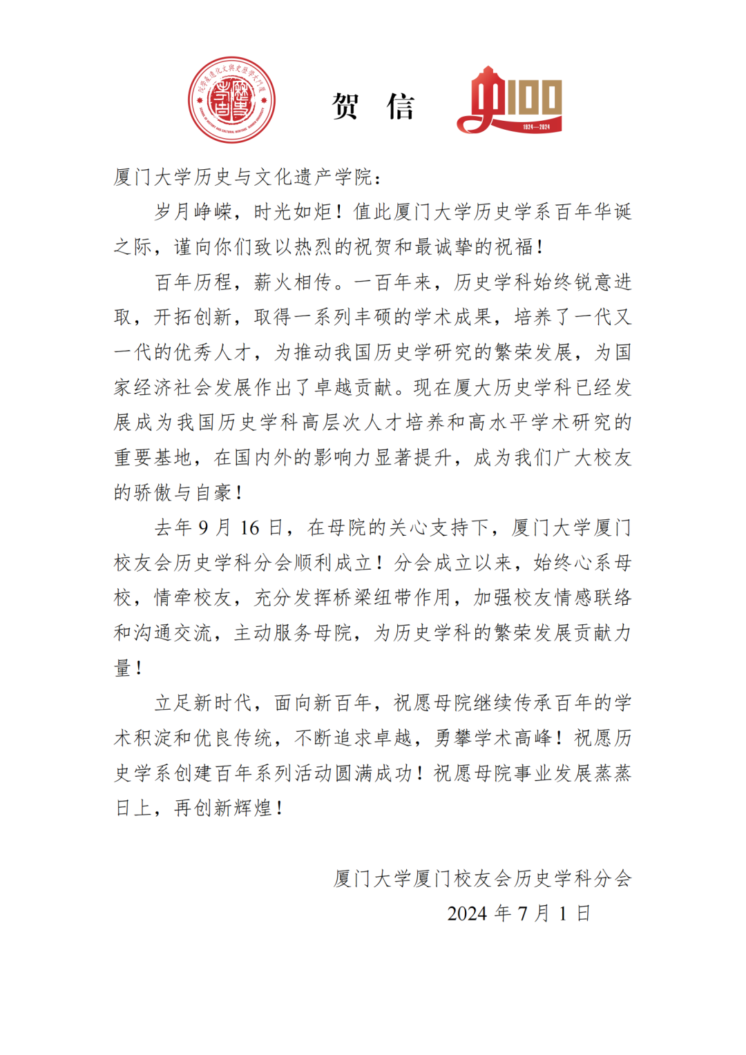 厦大历史学科将继续发挥学科优势特色,开启新百年奋斗征程,为党育人、为国育才,为学校建设中国高等教育东南中心,为以中国式现代化推进中华民族伟大复兴作出厦大史学的贡献!