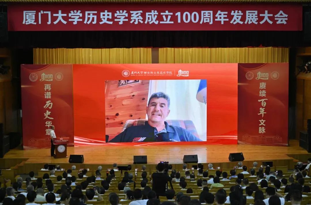 哈佛大学费正清研究中心原主任、哈佛大学东亚语言与文明系教授宋怡明通过视频致辞,热烈祝贺厦大历史学系成立100周年,期待未来持续加强友好交流与学术合作,共同推动历史学科建设,迎接更加光荣璀璨的下一个百年。