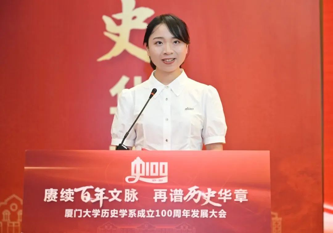 学生代表,教育部强基、拔尖计划学生,厦门大学2024年亚南奖学金获得者、2021级本科生古欣愉表示,在与历史学系共同成长的这三年中,她不仅习得了丰厚的历史学知识,也通过不断接受学术研究训练,将“厦大史学人”的烙印刻在心上。作为青年学子,未来将扬帆奋进、实践真知,践行厦大史学精神,在祖国大地上谱写青春华章。