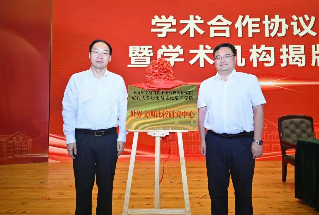 学院坚持以习近平总书记致厦门大学建校100周年重要贺信精神领航,加强校地合作,凝聚优质资源,着力构建中国特色历史学的学科体系、学术体系、话语体系。会上,学院分别与中国外文局、厦门市生态环境局和渤海大学历史文化学院举行了学术合作协议签约仪式,并为学术机构揭牌。