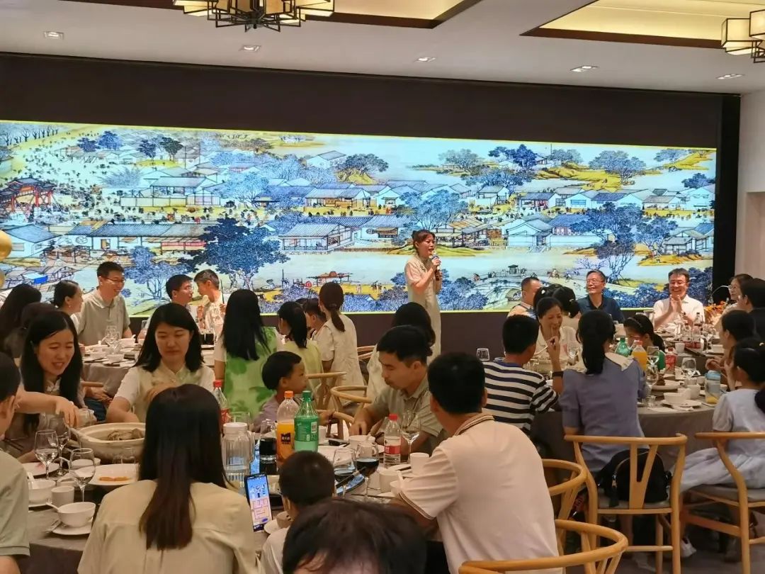 同学们奔赴千里、共赴此约。本次晚宴由谢达梅同学主持,她介绍道,32人的班级此次齐聚26人,连同法二代等家属共计72人济济一堂,实属不易,是集体的伟大凝聚力让我们兑现了每五年一聚的青春约定!