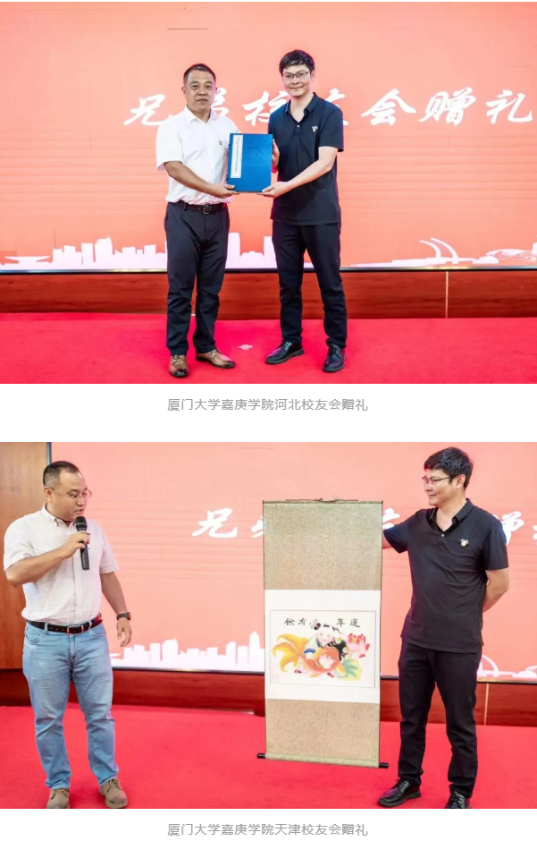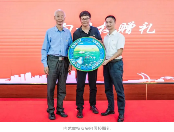 内蒙古校友会向母校赠礼——一幅独具特色的内蒙古族皮画,展现独特的草原生活,祝福母校越办越好,桃李满天下。嘉庚学院河北校友会会长郑洪生、副会长王春伟,天津校友会副会长张征宇到场祝贺,并送上来自河北和天津两个地方校友会的贺礼。嘉庚学院全球各地校友会也发来了贺信和祝福视频,表达对内蒙古校友会成立的美好祝愿。