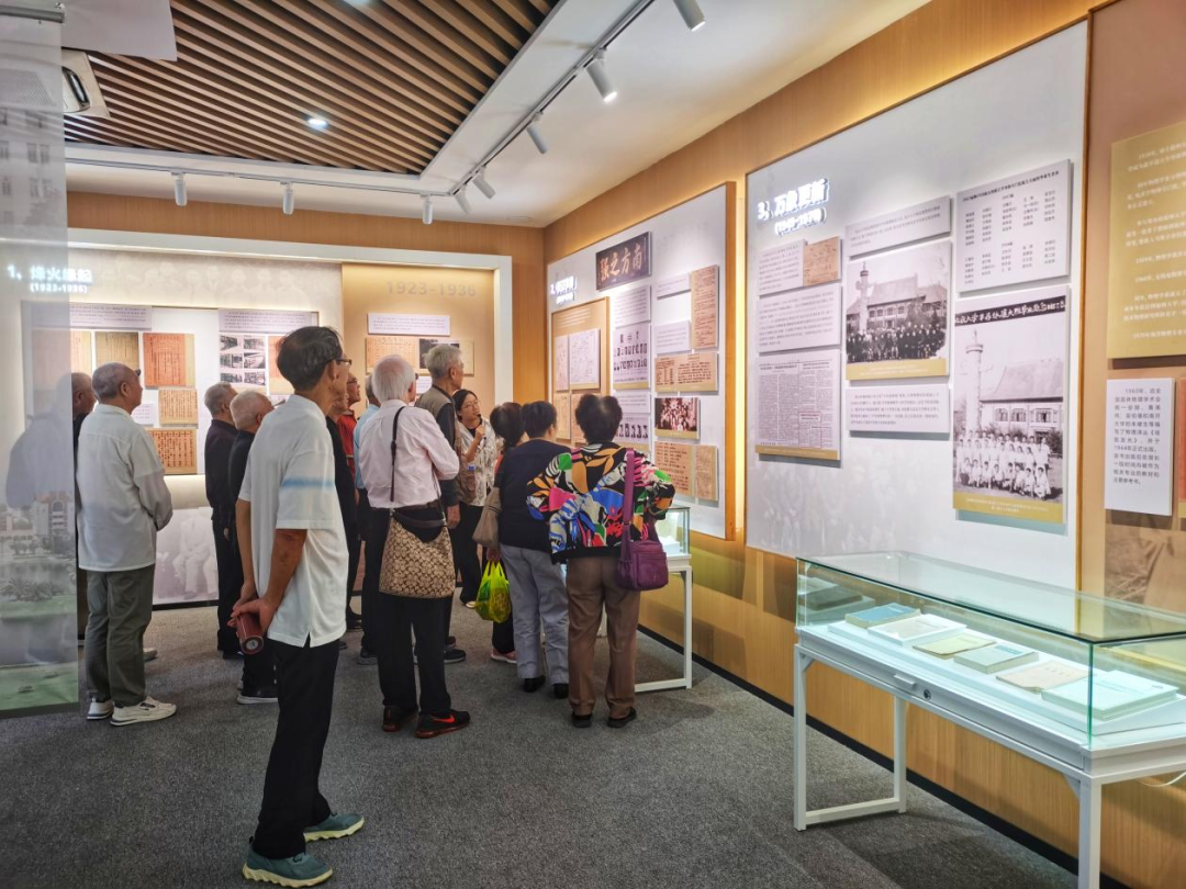体验翔安校区食堂午餐后,校友们来到思明校区海韵园。在物理大楼一同参观厦门大学物理学科创建一百周年成就展,珍贵的历史资料和老照片唤起许多美好回忆,老师昔年上课风采和校园故事还历历在目。