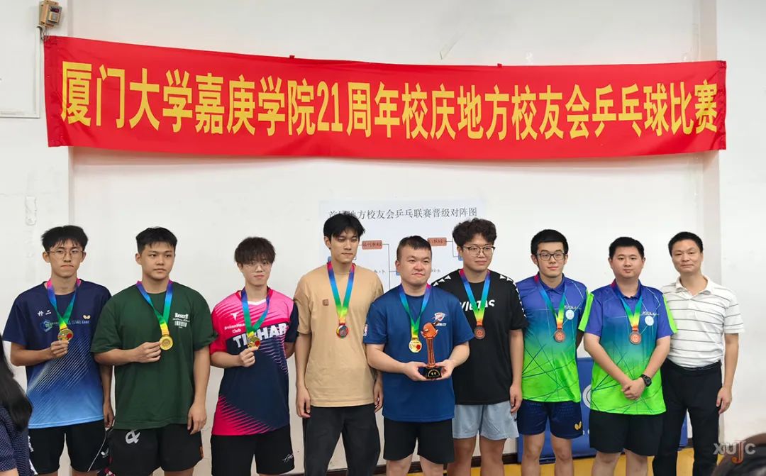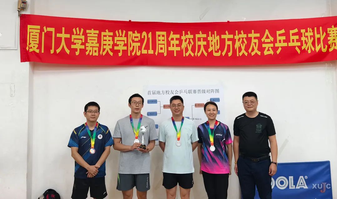 发球、接球、扣杀……选手个个精神抖擞、斗志昂扬,挥舞着手中的球拍,一系列动作行云流水,展现出高超球技和顽强拼搏精神。现场气氛热烈,观众的加油声、喝彩声此起彼伏。经过激烈争夺,厦门校友会一队夺得冠军,教工队获得亚军,福州校友会和泉州校友会并列第三。