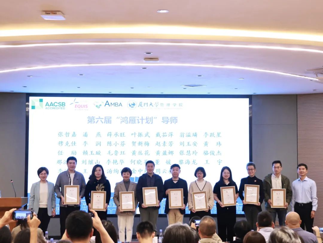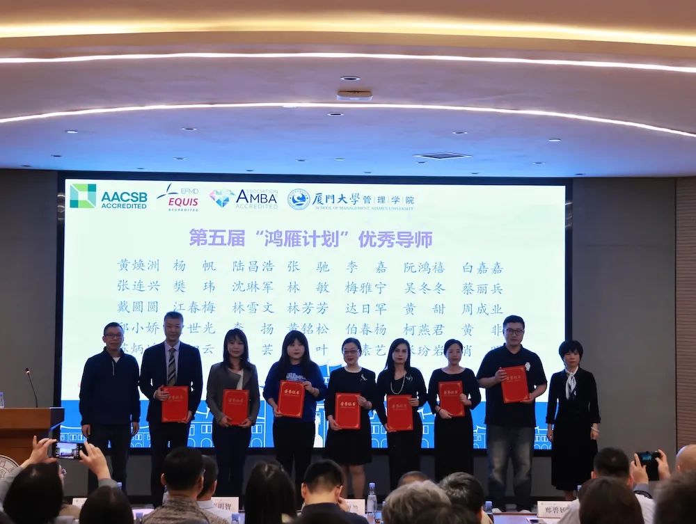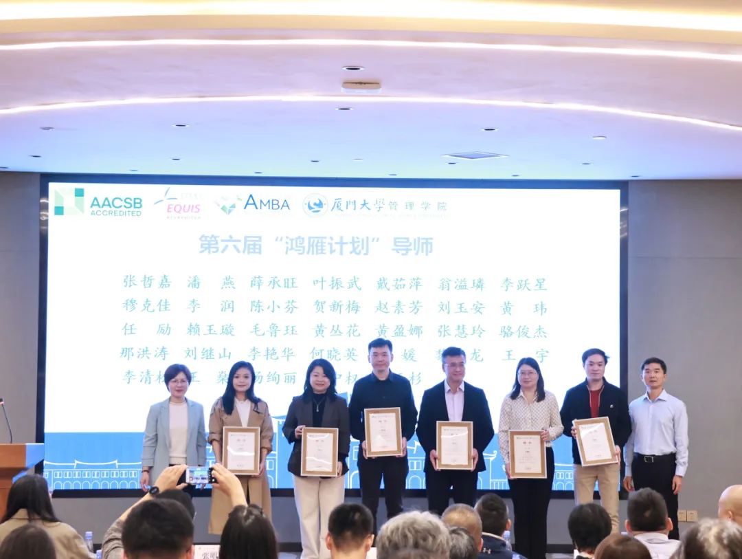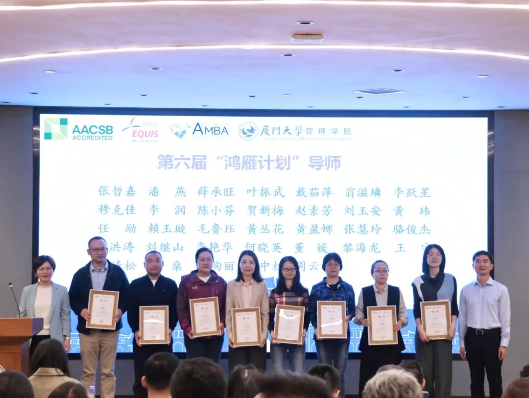 12月7日下午,管理学院第五届“鸿雁计划”优秀导师表彰暨第六届“鸿雁计划”启动仪式在思明校区克立楼三楼报告厅举行。厦门大学校友总会秘书处秘书长王智兰、管理学院党委书记张明智、学生工作部(处)副部(处)长陈国全、管理学院副院长傅馨、管理学院党委副书记郑碧娇、校友总会秘书处联络部主任李绍玉,“鸿雁计划”优秀导师代表、第六届“鸿雁计划”师生代表以及管理学院学生工作办公室、校友与对外合作办公室老师出席了本次活动。仪式由管理学院党委副书记周民钦主持。