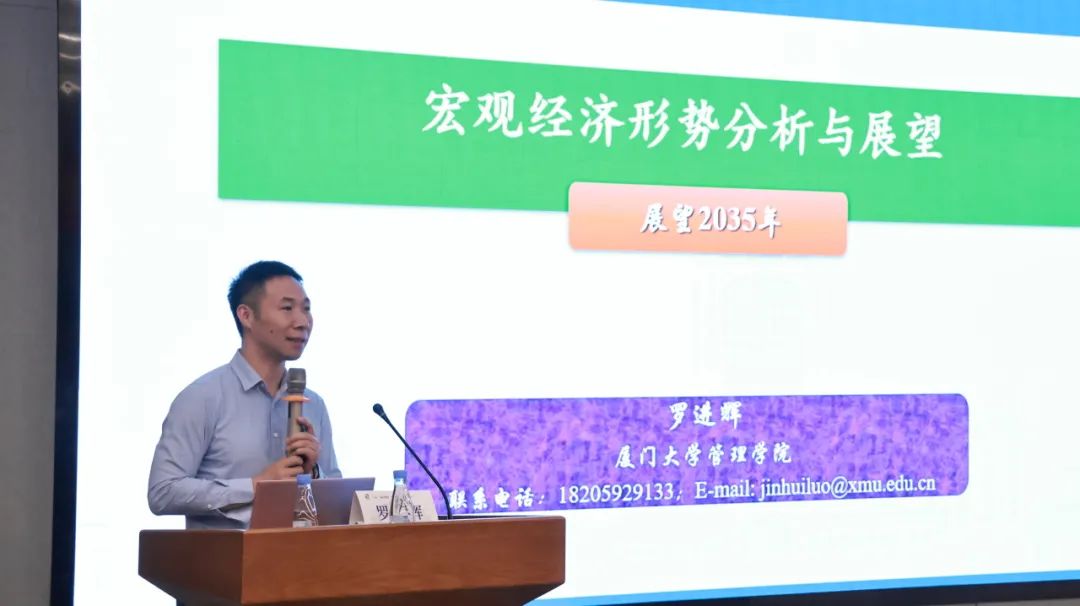 全体合影后,表彰及启动仪式正式结束。仪式后,郑碧娇主持举行专题讲座,国家重大社科基金首席专家、管理学院会计系罗进辉教授受邀为“鸿雁计划”师生们带来精彩讲座《宏观经济形势分析与展望》。